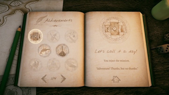 For instance, I went into this game trying to play as intelligently as possible – prepared for the game to be a test of survival. I declined Dahlia’s offer to visit Innsmouth to search for her missing daughter, and thus I got my first ending of a possible 27: ‘Let’s call it a day!’ Okay, I thought, so I’m going to have to play along if I want to see what the game has to offer.