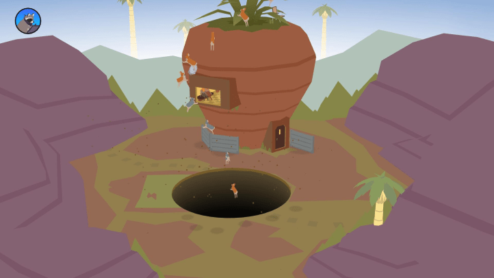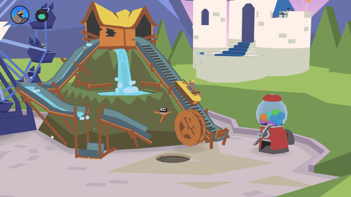 Donut County has a unique art style which, while a little simplistic, is done so intentionally. Each environment appears like simple paintings (except for the underground that feels a bit more complex) made of colourful shapes, with buildings and animal models having little bits of detail to make them stand out. The fact the human character of Mira doesn’t have a face shows the lack of intricate detail, but this is hardly an issue as it fits the game’s simple and fun feeling.