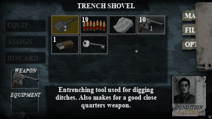 The game also makes effective use of ambient background sounds, things like the storm raging in the background or the sound of dying wounded soldiers, but the sound that I remembered the most is the eerie sound of approaching enemy soldiers, you’ll hear their breathing through masks which sent chills down my spine or their footsteps through the deep puddles of water. Finally on the other side of the presentation is the visuals which are incredibly unique, with a retro pixelated look that obscures certain details leaving the players to fill in the gaps of the more horrific images off-screen. The visuals also shine when you’re inspecting things in an environment where you’ll get a far more detailed first-person view. These sections are used when trying to solve puzzles or find hidden items. To keep in touch with the 90s survival horror aesthetic, the game also uses classic Full Motion Video (FMV) cutscenes similar to those seen in the original Resident Evil FMV.
