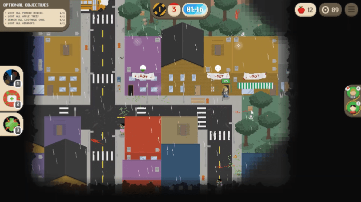 The bird’s-eye view also allows you to call in airstrikes on a large cluster of enemies or heal individual members of your group, as well as deploy unlockable special one-use powers. There is tremendous tension when your group is surrounded by flesh-eating hordes, and the bird’s-eye view adds a layer of powerlessness that turns it into a frantic struggle. I very much enjoyed the RTS gameplay of Deadly Days – my only real issue being that every now and then it would feel like my survivors were splitting apart to reach the same destination for no real reason, which caused them to take damage or die. In a game where death is permanent, these instances can be very frustrating.