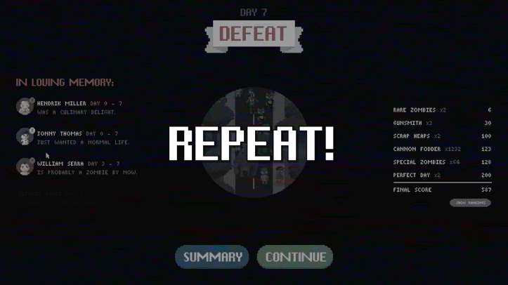 Overall, Deadly Days is a very enjoyable if occasionally frustrating addition to the rogue-lite genre. Its RTS twist on the zombie genre adds a unique flavour, and it’s a great game to throw on and lose several hours to its tense and engaging gameplay. The sense of progression constantly kept me coming back and helped me overlook any runs that frustrated me or that I felt were unfair.